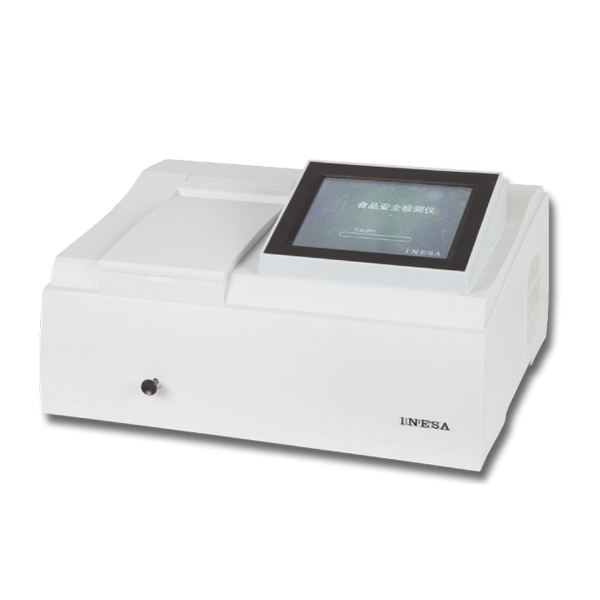,酶催化神經(jīng)傳導(dǎo)代謝產(chǎn)物(乙酰膽堿)水解,其水解產(chǎn)物與顯色劑反應(yīng),產(chǎn)生黃色物質(zhì),用分光光度計測定412nm下吸光度隨時間的變化值,計算出抑制率,通過抑制率可以判斷出樣品中是否含有有機(jī)磷或氨基甲酸酯類農(nóng)藥的殘留。可以實現(xiàn)有機(jī)磷及氨基甲酸酯類農(nóng)藥殘留量的現(xiàn)場快速檢測。